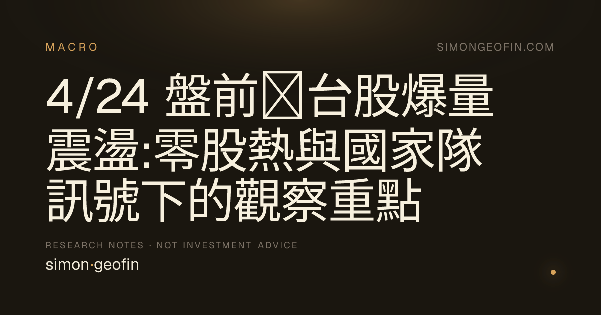 把這四個問題分開問,比把「爆量、零股、國家隊」混成一個結論更有資訊價值。盤前訊號的價值,不在於它能否給出答案,而在於它是否讓讀者帶著正確的問題進入當日盤中。